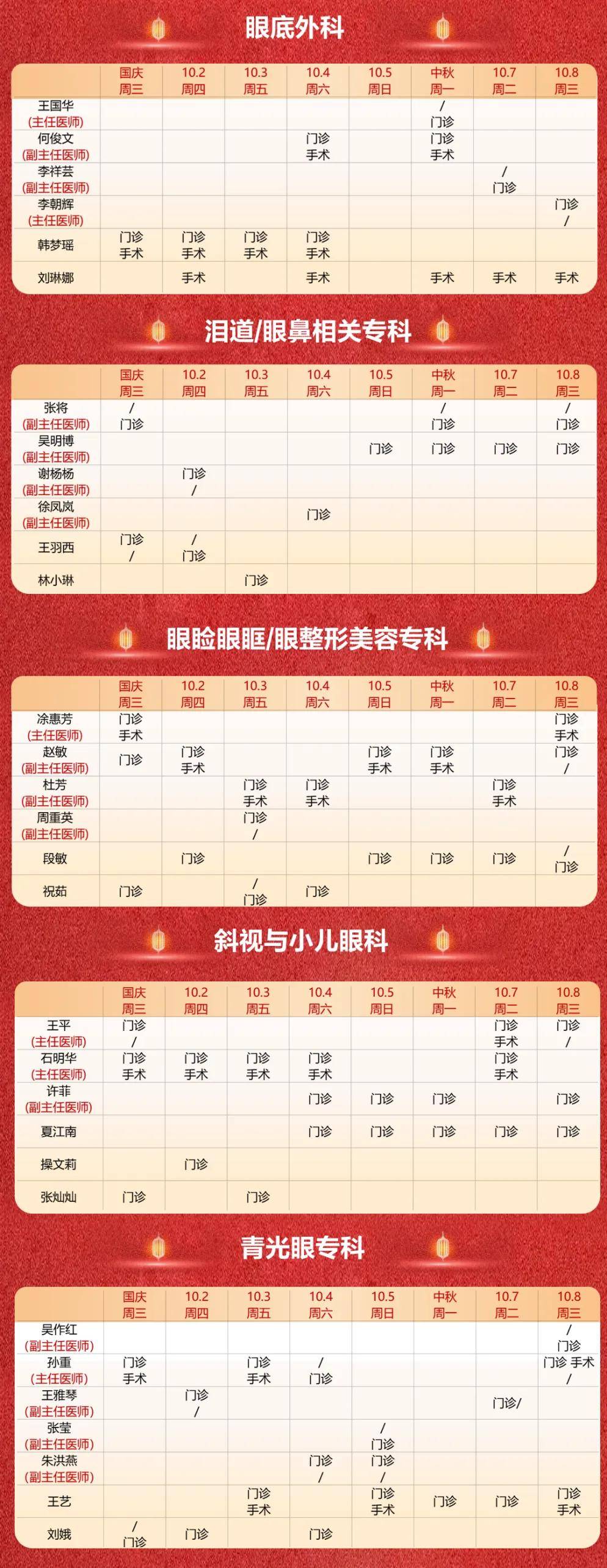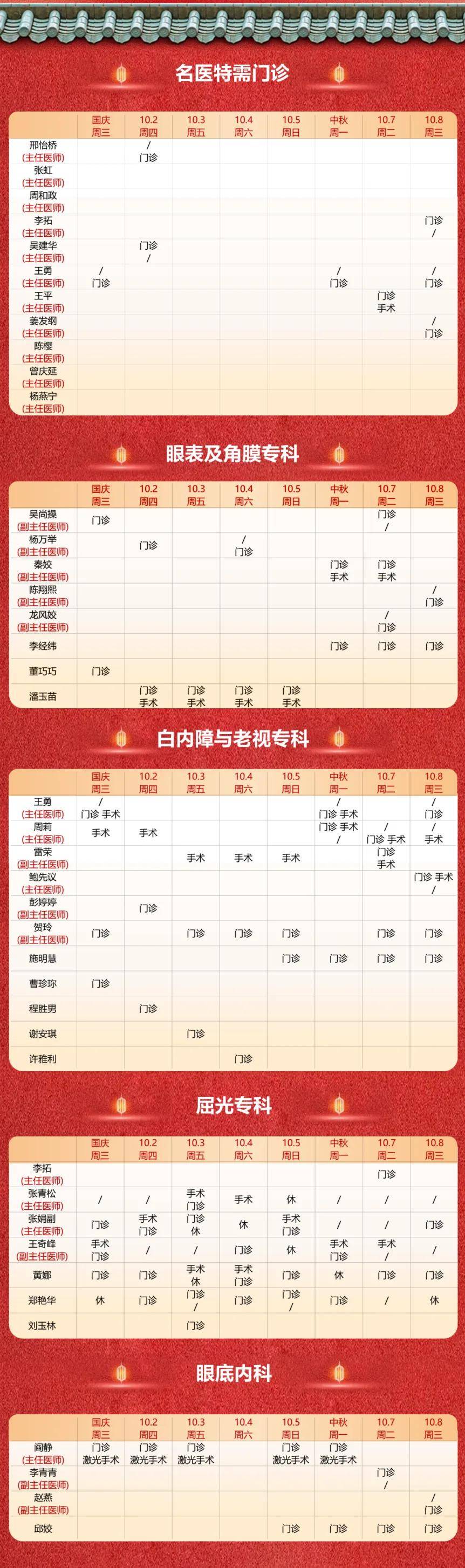 湖北爱尔眼科医院(湖北总院)国庆中秋双节门诊手术安排出炉!