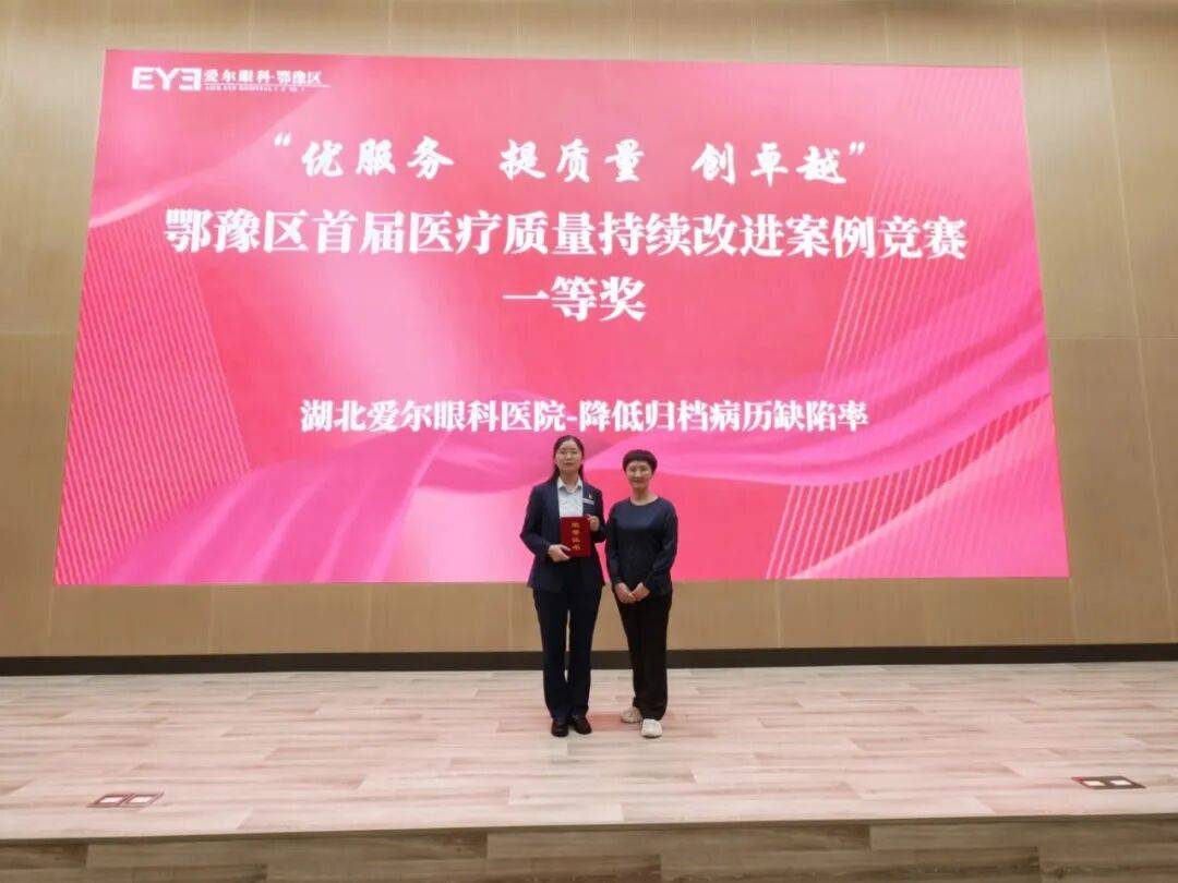 经过紧张激烈的角逐,最后湖北爱尔眼科医院的案例荣获本次大赛一等奖;武汉爱尔眼科医院的3个案例荣获二等奖;湖北爱尔眼科医院、襄阳爱尔眼科医院、武汉爱尔眼科汉阳医院共3个案例荣获三等奖;洛阳博爱眼科医院、周口爱尔眼科医院、孝感爱尔眼科医院、潜江爱尔眼科医院、武汉爱尔眼科汉口医院、武汉艾格眼科医院、武汉爱尔眼科洪山医院共7个案例荣获优秀奖。集团医管中心领导和鄂豫区管委会领导为获奖项目颁发荣誉证书。