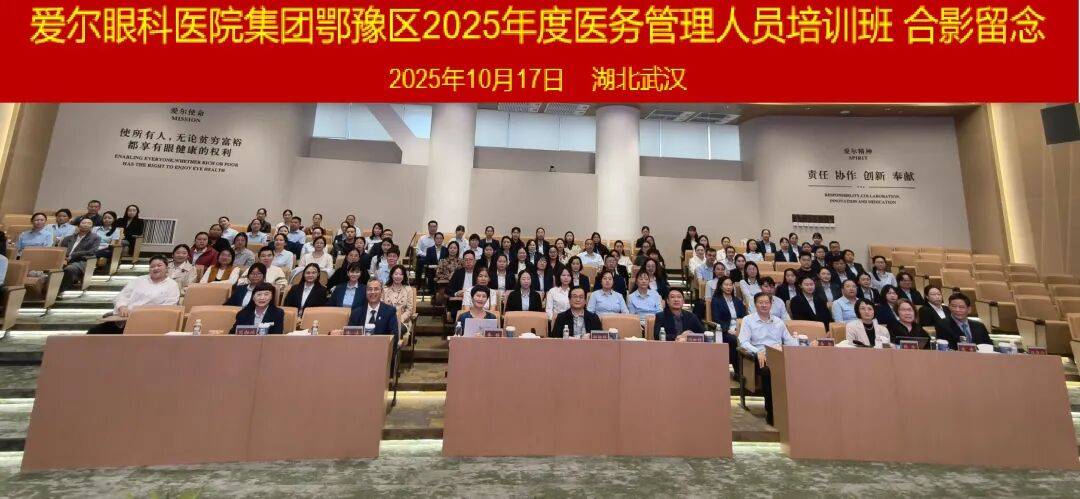 聚力提升医务管理,夯实高质量发展根基。2025年10月17日,爱尔眼科医院集团鄂豫区医务部与质控部于湖北爱尔眼科医院联合主办了“2025年度医务管理人员培训班”。此次培训班汇聚了鄂豫区内72家医疗机构共150余名医务管理骨干参会,同时出席本次培训班的领导有:爱尔眼科医院集团医疗管理中心副总监李雅女士、爱尔眼科医院集团医疗管理中心医学信息部主任韩欢女士、爱尔眼科医院集团鄂豫区总院长邢怡桥教授、爱尔眼科医院集团鄂豫区副总院长李拓教授、爱尔眼科医院集团鄂豫区医务总监张庆先生、爱尔眼科医院集团鄂豫区质控总监范湘鸿女士、艾格眼科医院医务总监汪昌介先生。此次培训班课程聚焦前沿理念与实战工具,旨在通过系统化的学习与交流,推动鄂豫区医务质量朝同质化、标准化发展迈出更加坚实的步伐。