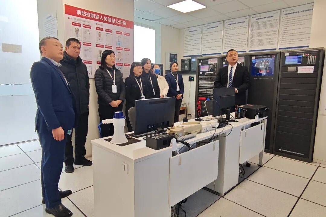 安全管理委员会成员于医院监控室观摩指挥后续演练