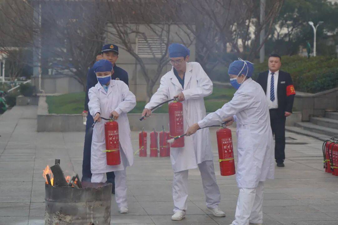 武昌区消防救援站副站长唐朝对医院职工进行灭火实操演练培训