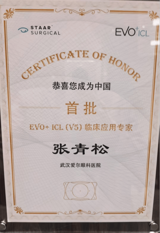 本次荣誉与权威的认证,是对张青松院长个人专业实力的高度认可,亦是对武汉大学附属爱尔眼科医院在屈光手术领域技术与临床规范性的肯定,标志着 武汉大学附属爱尔眼科医院在新一代近视矫正技术的引进与临床应用上与国际前沿接轨,为区域近视患者带来了更优质的诊疗选择。