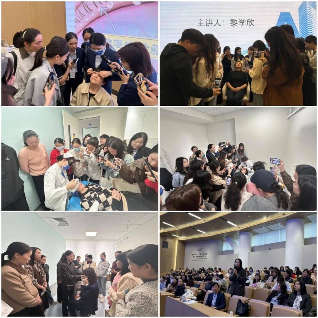 10 月 31 日上午,培训班进入实操教学环节,这也是此次培训的一大亮点。洪山爱尔眼科医院护士长向小红、汉阳爱尔眼科医院角膜专科护士黎学欣、湖北爱尔眼科医院角膜专科护士王露、汉口爱尔眼科医院角膜专科护士陶梦寒、武汉爱尔眼科医院护士长邱丹分别就睑板腺按摩、睑缘深度清洁、强脉冲光、手持热脉动、家庭干眼护理的规范化操作流程进行了详细的讲解。