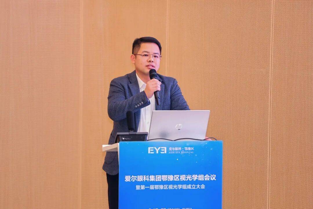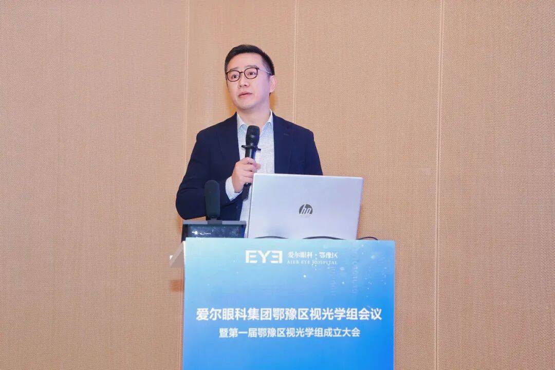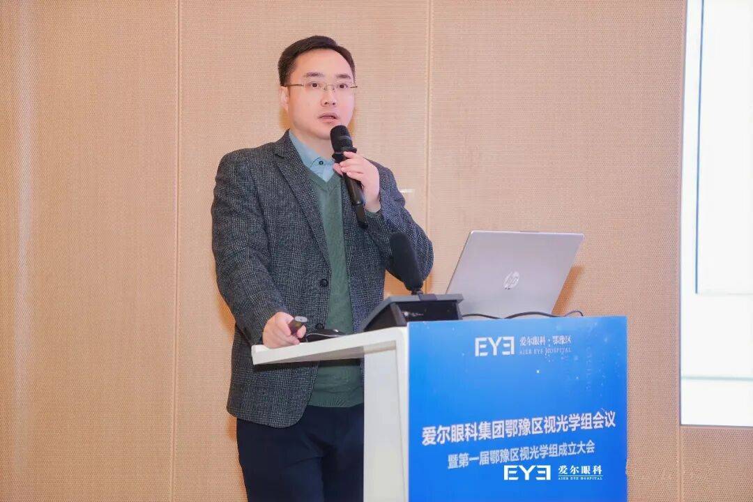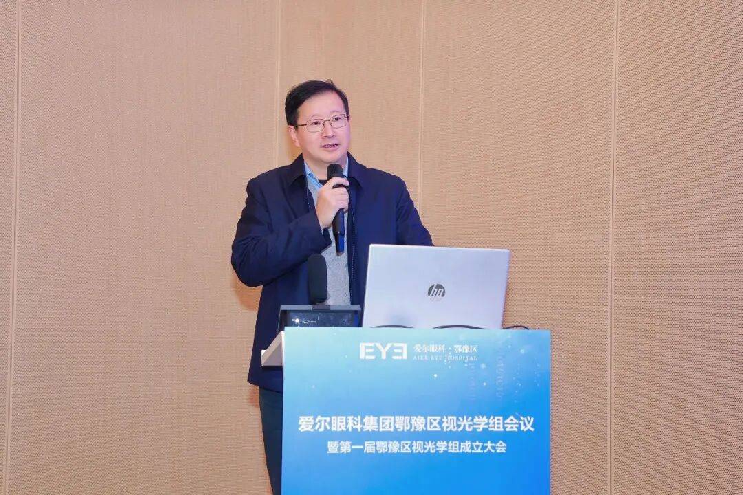 爱尔眼科集团视光及小儿眼科事业部总监蓝卫忠教授的致辞中,首先肯定鄂豫区各医院及门诊部在过去一年里所付出的努力与作出的贡献,希望鄂豫区视光学组成立后,鄂豫两区能打破地域壁垒,实现资源共享、经验互通;在学术上,多开展实打实的技术研讨;在业务上,共同制定服务标准、质量控制体系;在人才上,搭建双向交流平台,让优秀经验快速复制推广。同时集团视光及小儿眼科事业部将会一如既往从多维度支持大家,赋能指导,共同书写鄂豫区眼视光高质量发展的新篇章!
