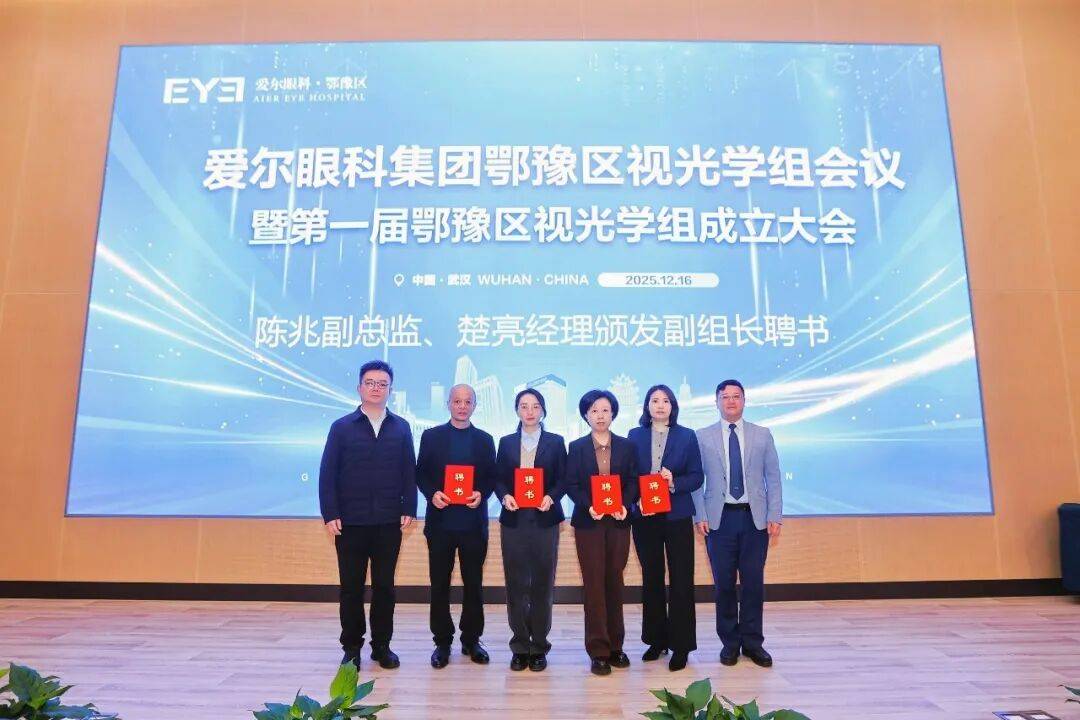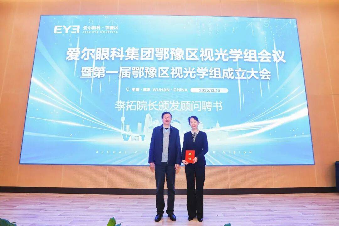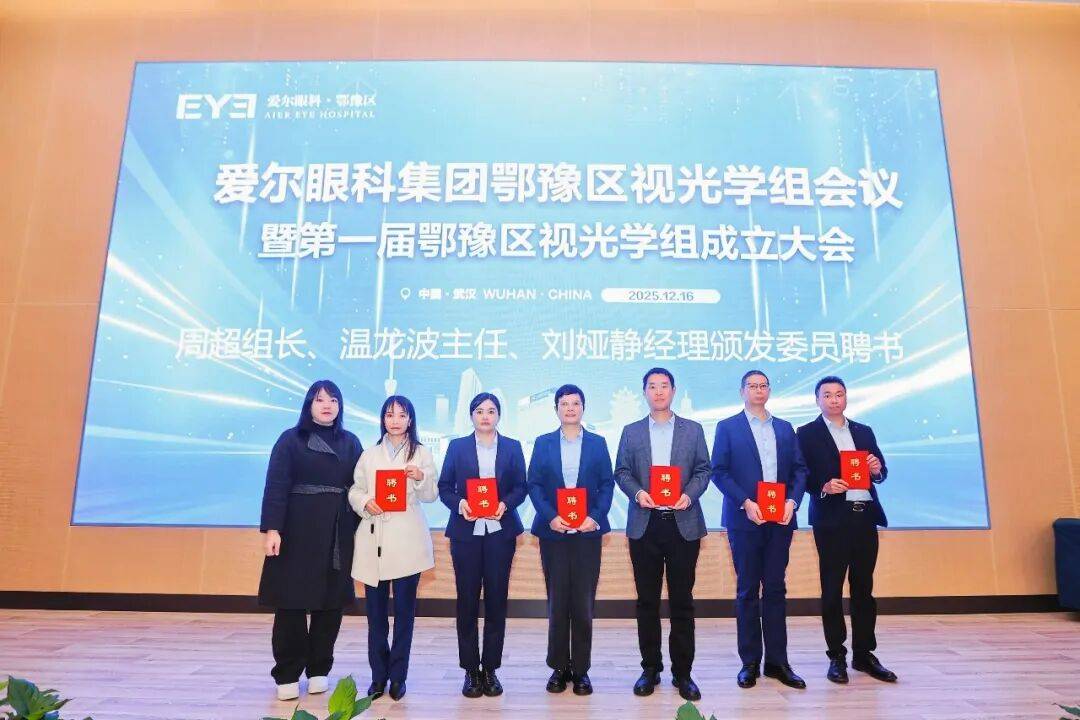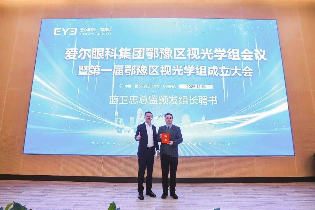 爱尔眼科集团视光及小儿眼科事业部副总监陈兆、爱尔眼科集团视光采购公司总经理楚亮为鄂豫区视光学组副组长颁发聘书