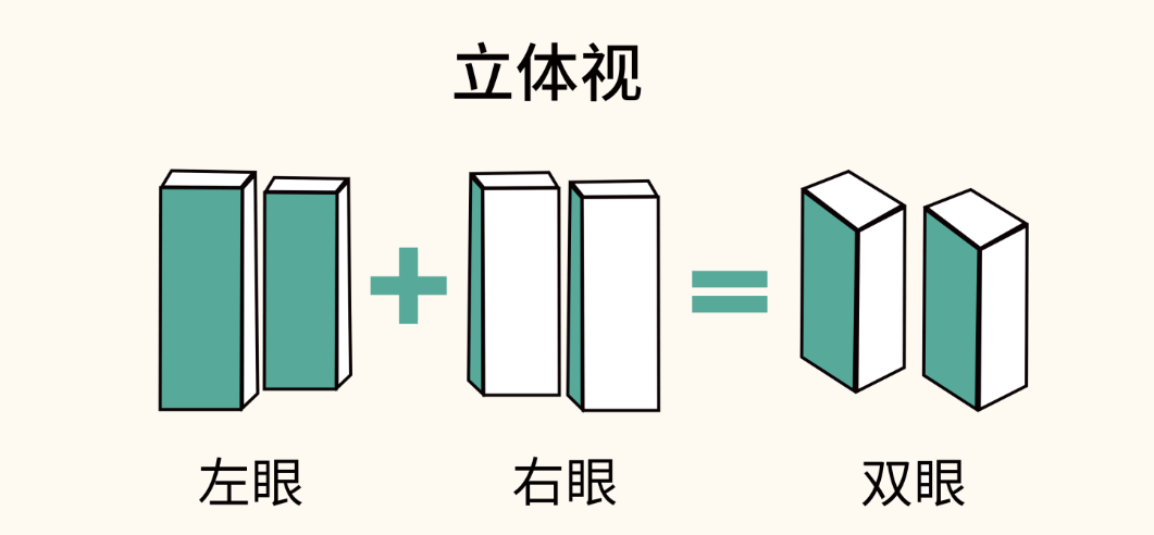 很多家长以为“能看清”就是视力好,实际上“立体视”也是视物至关重要的一环——立体视是双眼对物体远近、深浅、高低三维空间位置的分辨感知能力。 它的产生需要双眼同时注视一个物体,通过大脑皮质把融合的像感知为具备三维空间的物体。